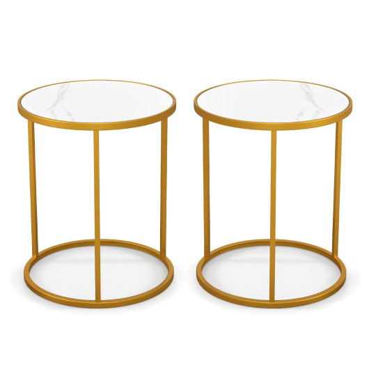 ● Stable golden metal frame provides structural stability ● Powder-coated metal frame is durable and rust-resistant● Firm connections make the support leg and the base firmly connected● Design of anti-slip foot pads prevents tables from slipping on smooth tiles ● Our side table is compa