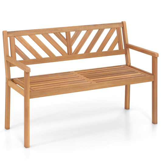 2-Person Patio Acacia Wood Garden Chair with Armrests and Backrest