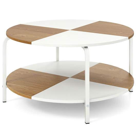 2-Tier Round Coffee Table Metal Frame with Storage Shelf-Natural &
