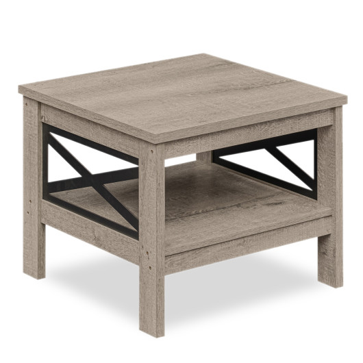 2-Tier Square Side Table with Storage Shelf and X-Frame for