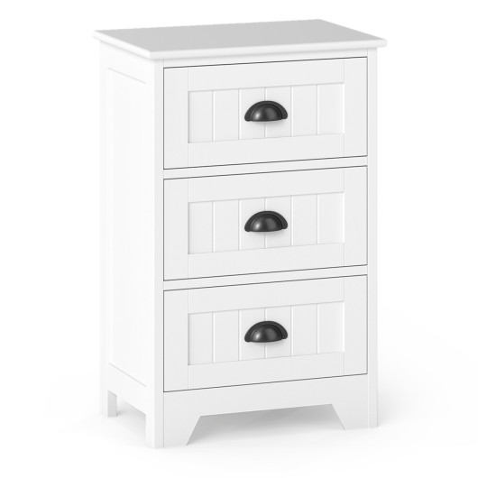 3 Drawers End Storage Wood Side Nightstand-White