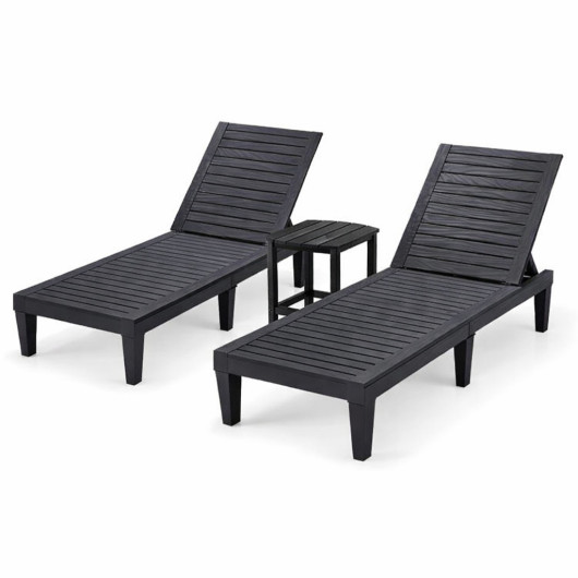 3-Piece Outdoor Adjustable Chaise Lounge Set with 2 Recliners and