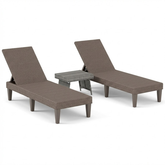3-Piece Patio Set with 2 Adjustable Lounger Chairs and Rattan