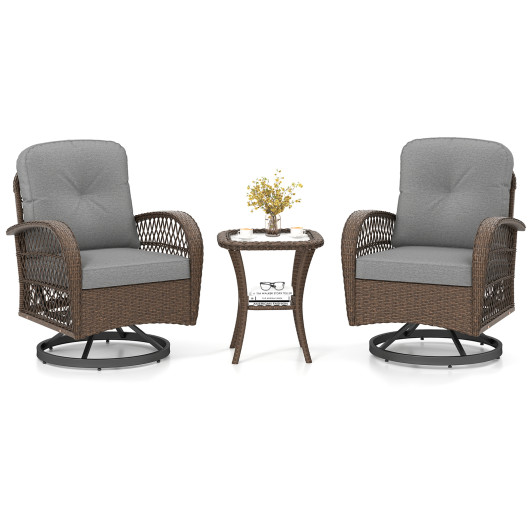 3 Piece Patio Swivel Rocker Set with Tempered Glass Side