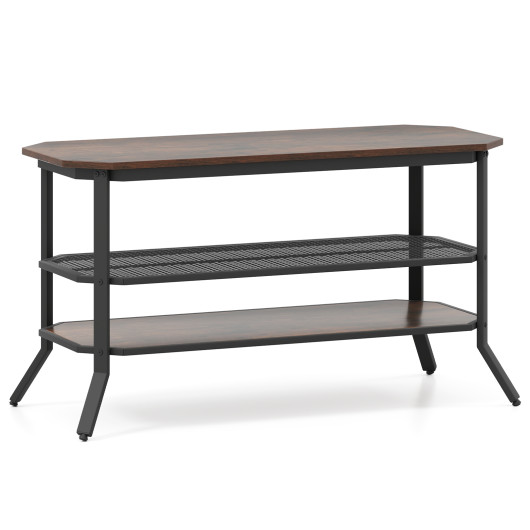 3-tier Console Table TV Stand with Mesh Storage Shelf-Rustic Brown