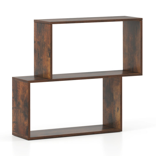 3-Tier Geometric Bookshelf Freestanding Wooden Bookcase with 2 Cubic Compartments-Brown