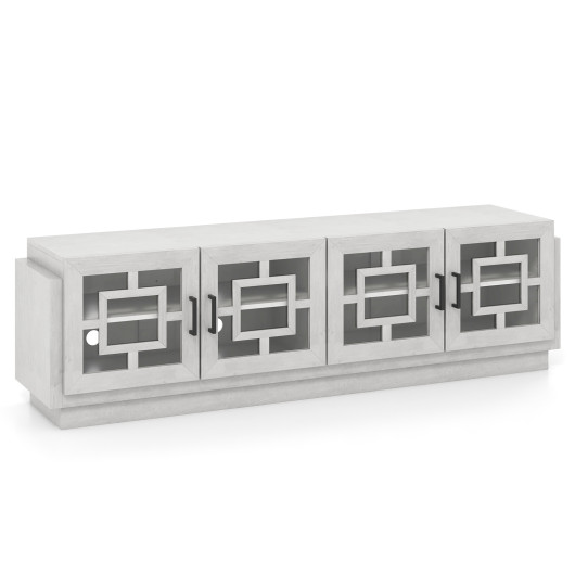 ● Wide tabletop can accommodate a TV of 60″/65″/70″/75″● 2 glass cabinets provide large storage capacity for items● 5-position adjustable shelves are easy to accommodate items of different sizes● 2 anti-toppling kits prevent wobbling and improve safety● Thickened