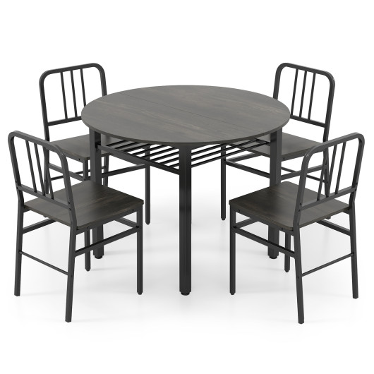 5-Piece Round Dining Table Set with Storage Shelf for Dining