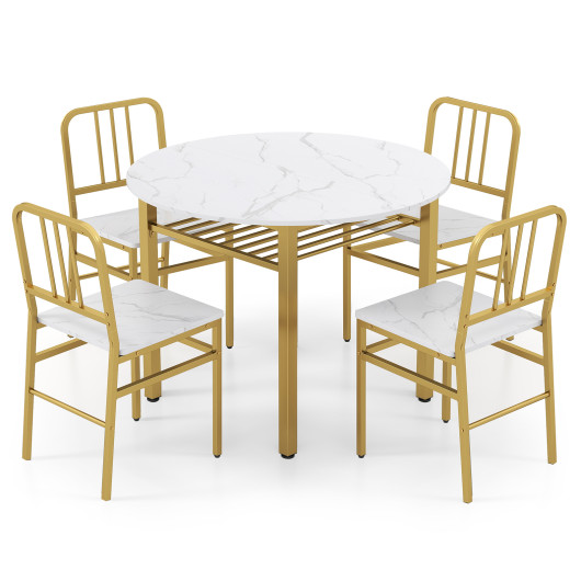 5-Piece Round Dining Table Set with Storage Shelf for Dining