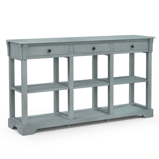 ● Retro look and graceful shape make the sofa table an aesthetically-pleasing piece● Wide tabletop is a perfect platform to display decorative items ● Large drawers and open shelves suit different storage needs● Sturdy and well-crafted console table built to last● Solid wood legs ensure