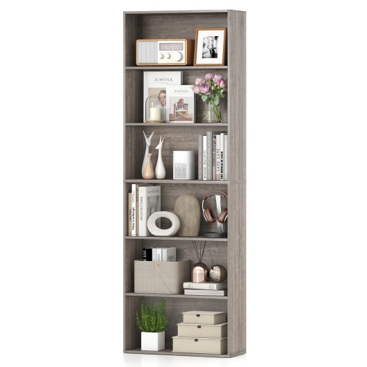 6-Tier Bookcase with 6 Open Shelves and Anti-Toppling Kits-Gray