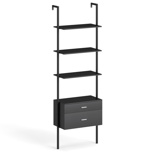 6-Tier Ladder Bookcase with 2 Drawers and Metal Frame-Black