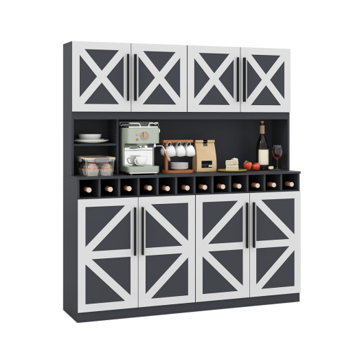 ● 4 double door cabinets maximize storage space effortlessly● 2 adjustable shelves accommodate items of varying sizes● Wide countertop with open shelves for easy access● 12-bottle wine rack adds both functionality and style● 2 anti-tipping kits offer enhanced stability and reliable use