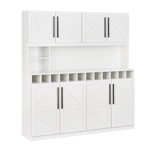 ● 4 double door cabinets maximize storage space effortlessly● 2 adjustable shelves accommodate items of varying sizes● Wide countertop with open shelves for easy access● 12-bottle wine rack adds both functionality and style● 2 anti-tipping kits offer enhanced stability and reliable use