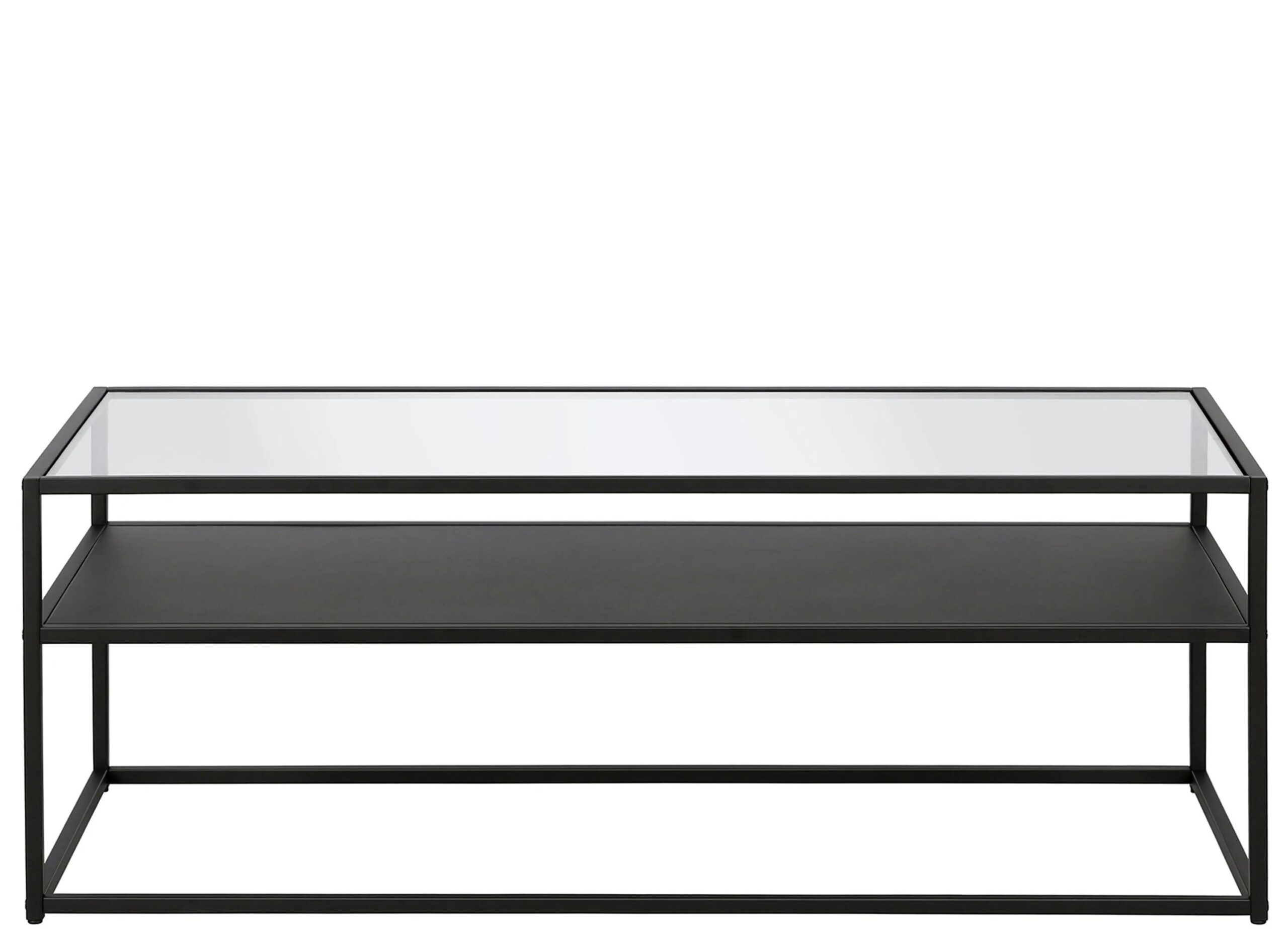 This industrial display box styled Ada coffee table features a seamless blend of function and design. Easy to style, the tempered glass top, metal shelf and blackened bronze finish make it the perfect addition to your living room or den ensemble.