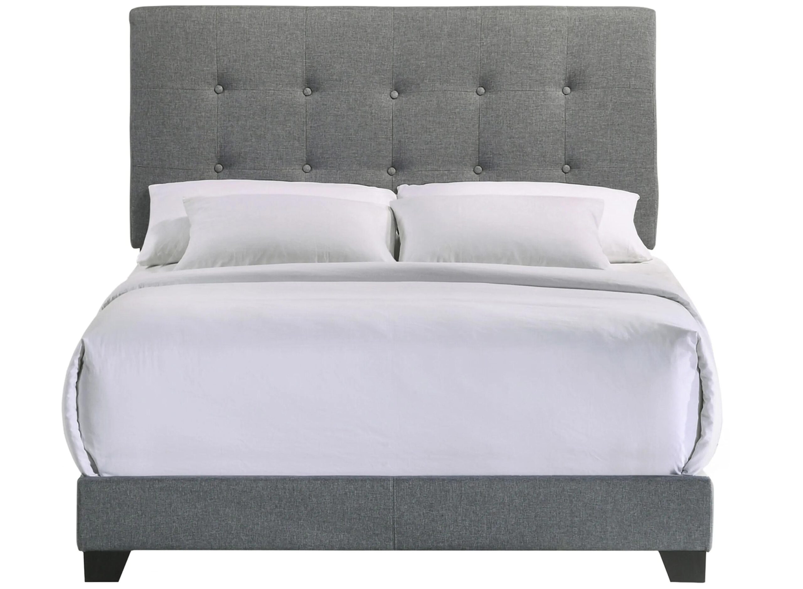 The Addyson Upholstered Bed Collection features a Gunmetal Fabric with a classic and modern Tufted Cushion Headboard. The Poplar and Rubberwood Construction rounds out this collection, making it not only stylish but durable as well.