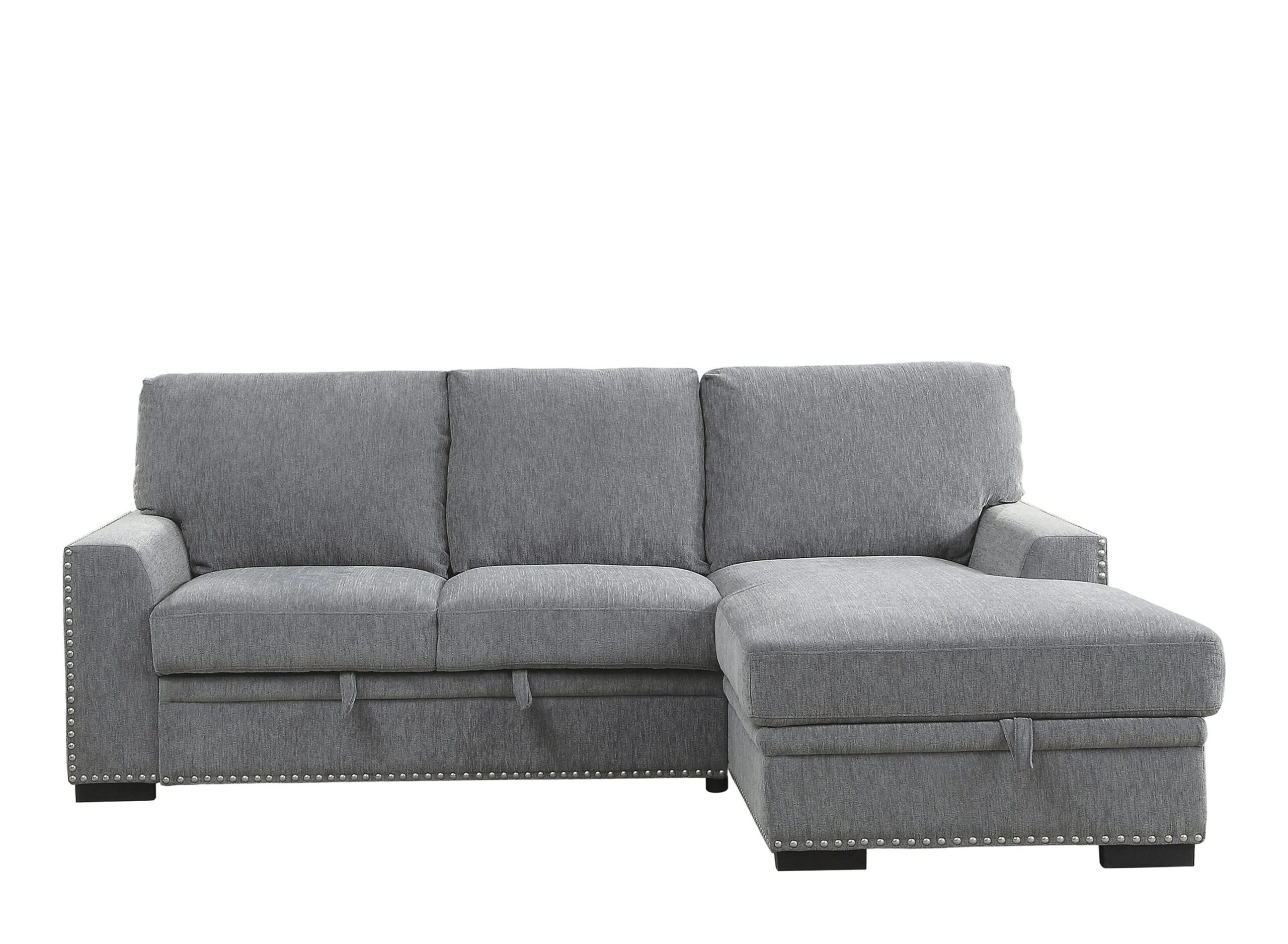 A perfect addition to your casual living room, the Adelia 2-pc. sectional with pull-out bed functionality goes beyond that of a traditional sofa. Covered in chenille, the modern profile of this seating is defined by its loose back cushions and track-style arms.