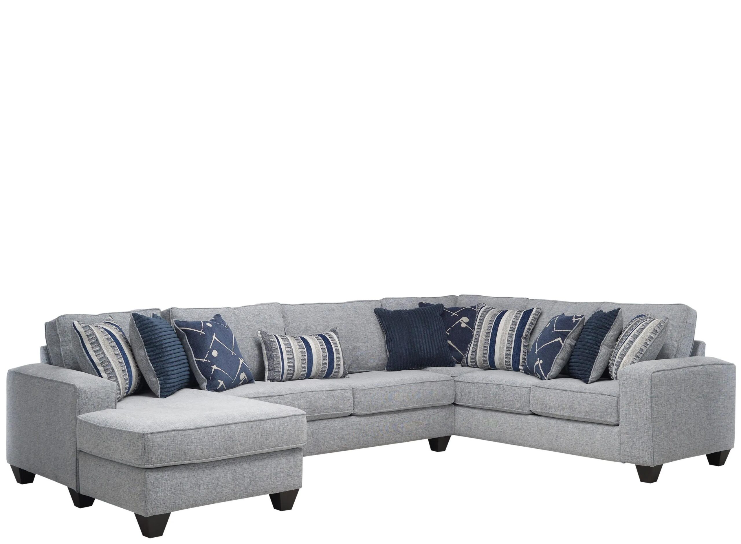 Comfortable and true like a favorite pair of jeans, the Alston 3-pc. sectional is sure to be preferred seating for years to come. Soft neutral upholstery pops with the personality of boho inspired accent pillows in shades of indigo and denim blue.