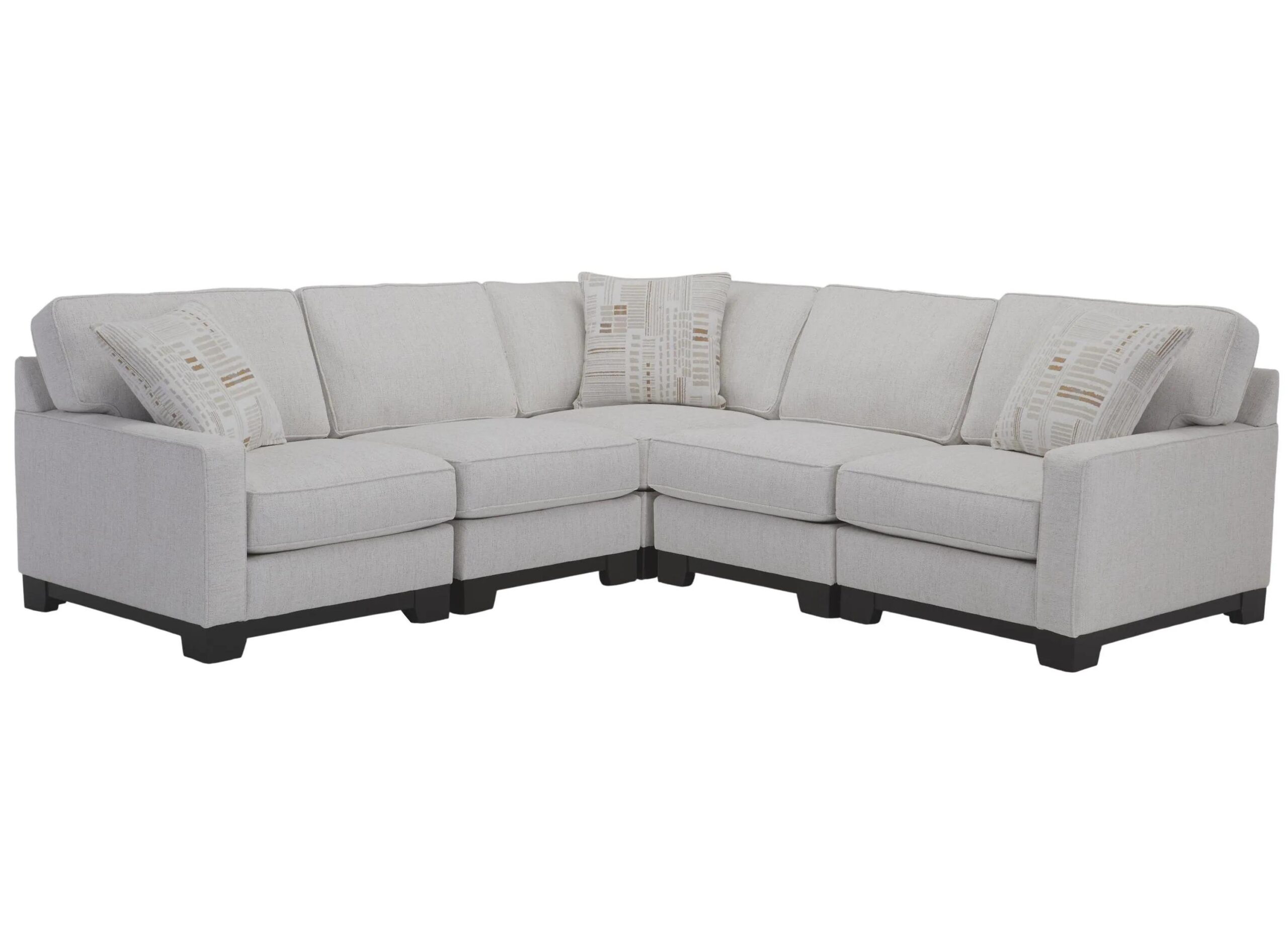 Sink into effortless comfort with the beautifully tailored Artemis I 5-pc. sectional, designed to bring relaxed sophistication to your living space. Upholstered in a soft, neutral fabric, its clean lines and plush cushions create an inviting silhouette that feels both modern and timeless.