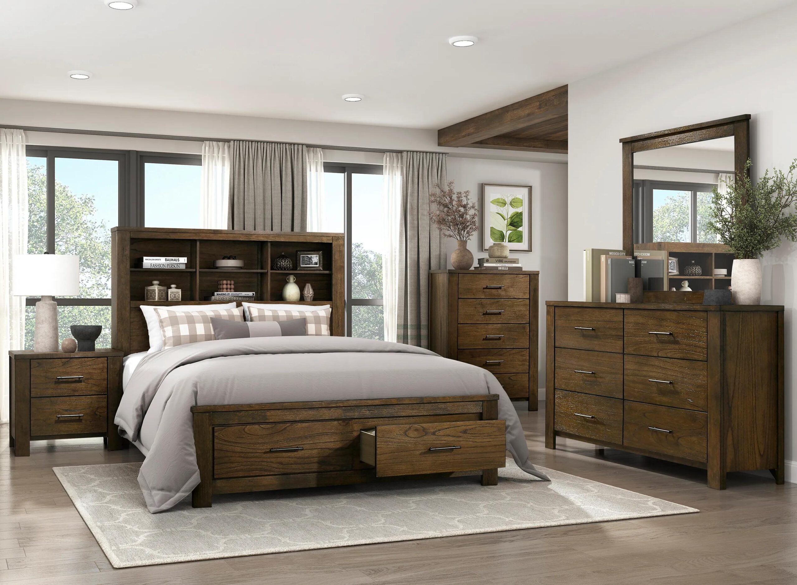 Expanding the functional storage space in your bedroom, the Arya 4pc. Bedroom Set w/ Storage provides ample drawers and shelves to achieve your desired bedroom design. The bed’s headboard features bookcase shelving, allowing for open display, and the drawers of the footboard allow for under