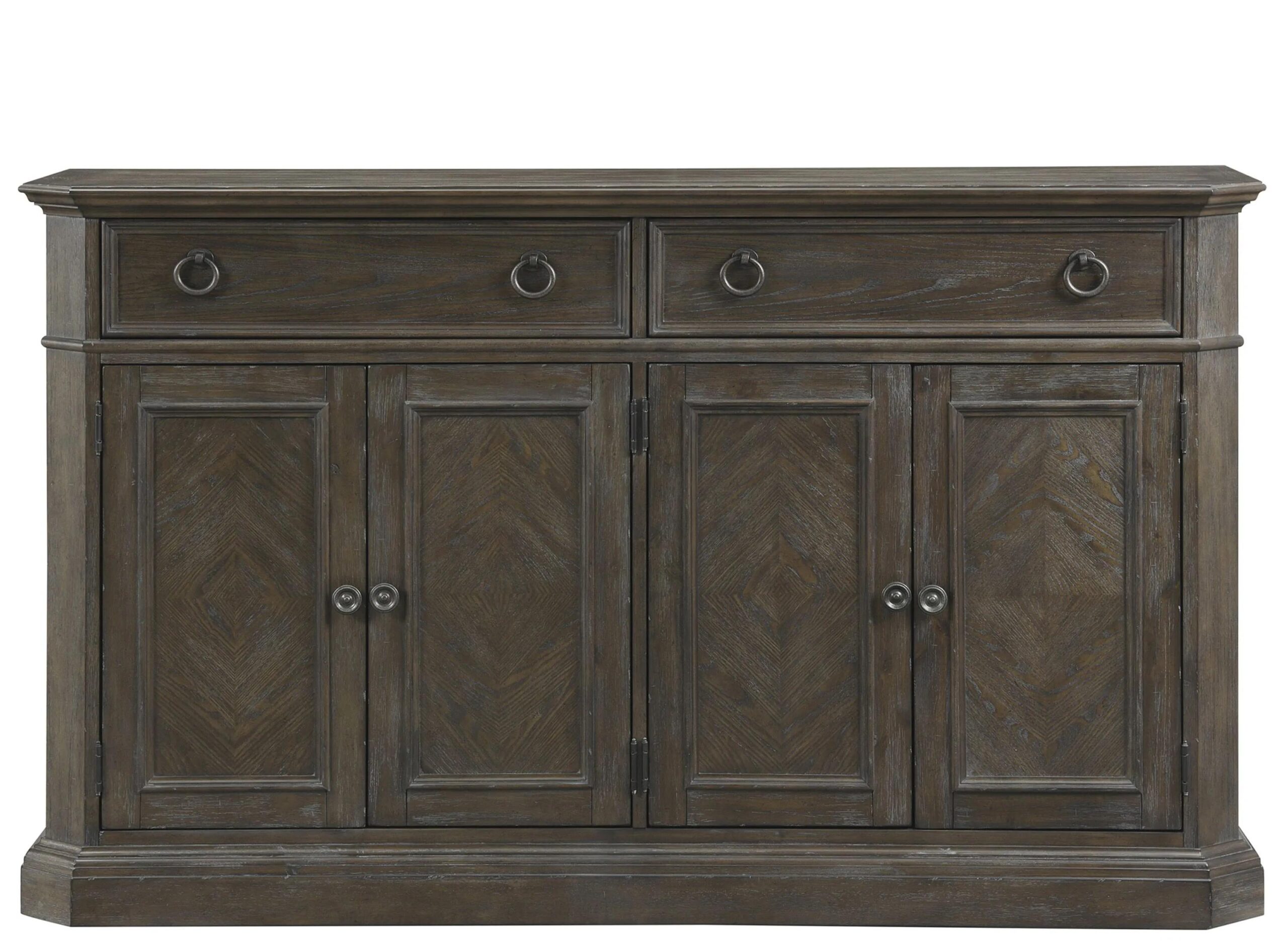 With a style that fits the transitional aesthetic of your home, the Ashford buffet is sure to become a perfect platform for your mealtime activities. The buffet’s door fronts catch your eye with their quadrant v-matched veneer pattern while the ash veneer is highlighted with a driftwood bro
