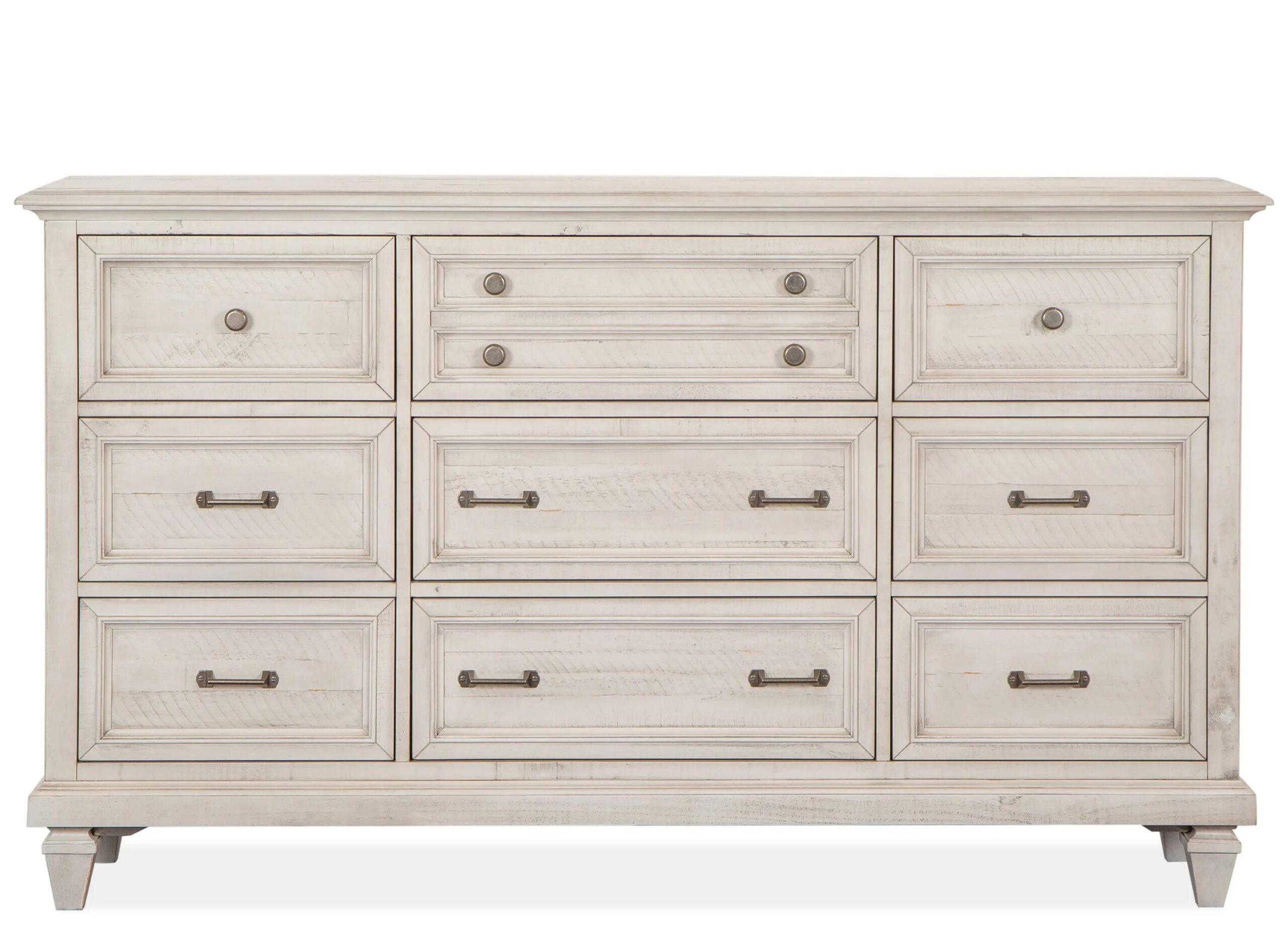 Inspired by the architecture and landscape of California Wine Country, the Ashford Dresser exudes the ambience of laid-back luxury. Crafted of high-low pine and pine solids, the soft finish and brushed hardware mix effortlessly with graceful turned legs and designer details to create a look that