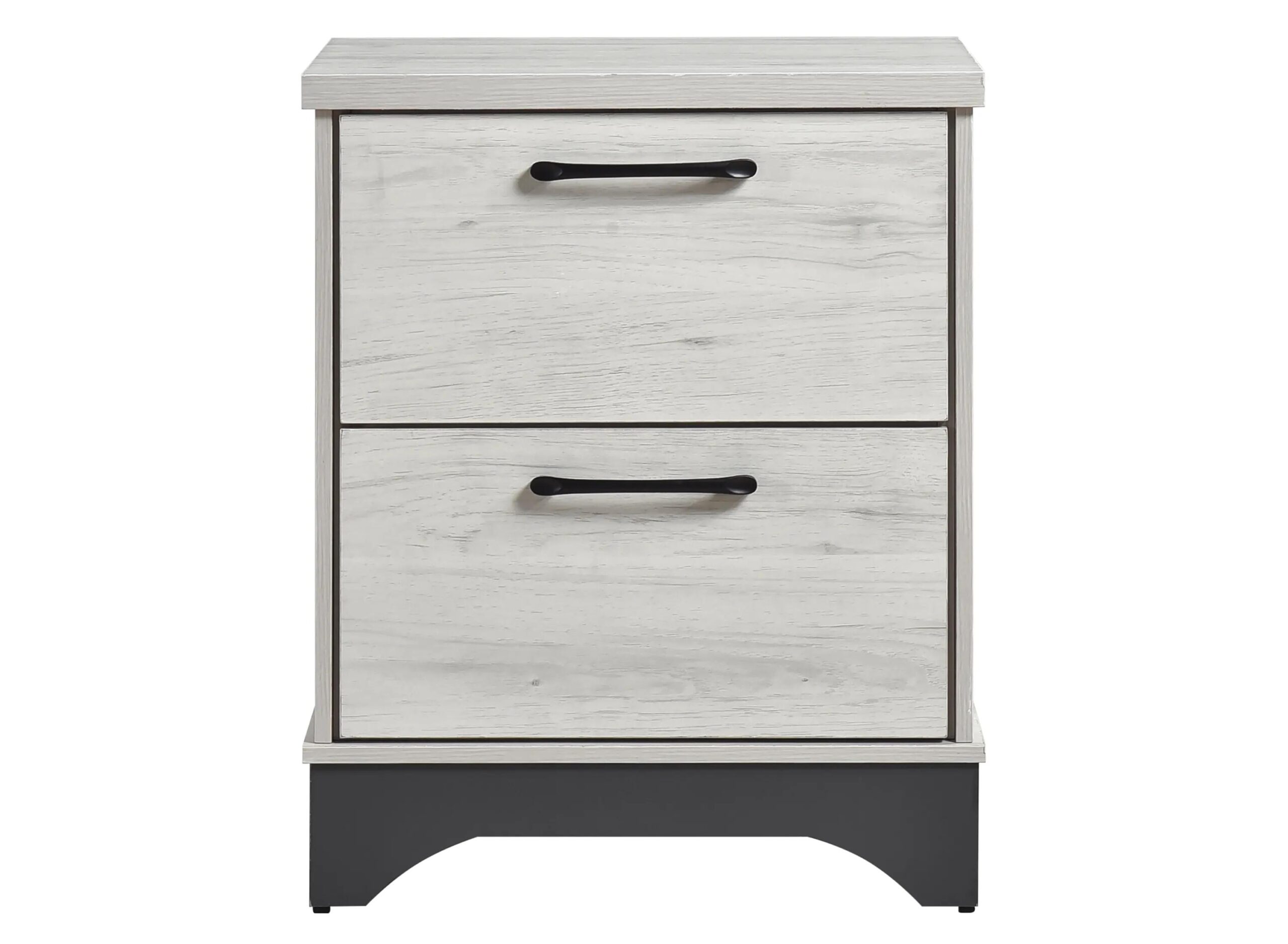 Enhance your bedside with this chic and functional Aspen Nightstand, featuring a contemporary two-tone white oak and gray finish. Crafted from a durable blend of lamination paper, wood, and engineered wood, this piece offers a modern aesthetic with lasting stability.