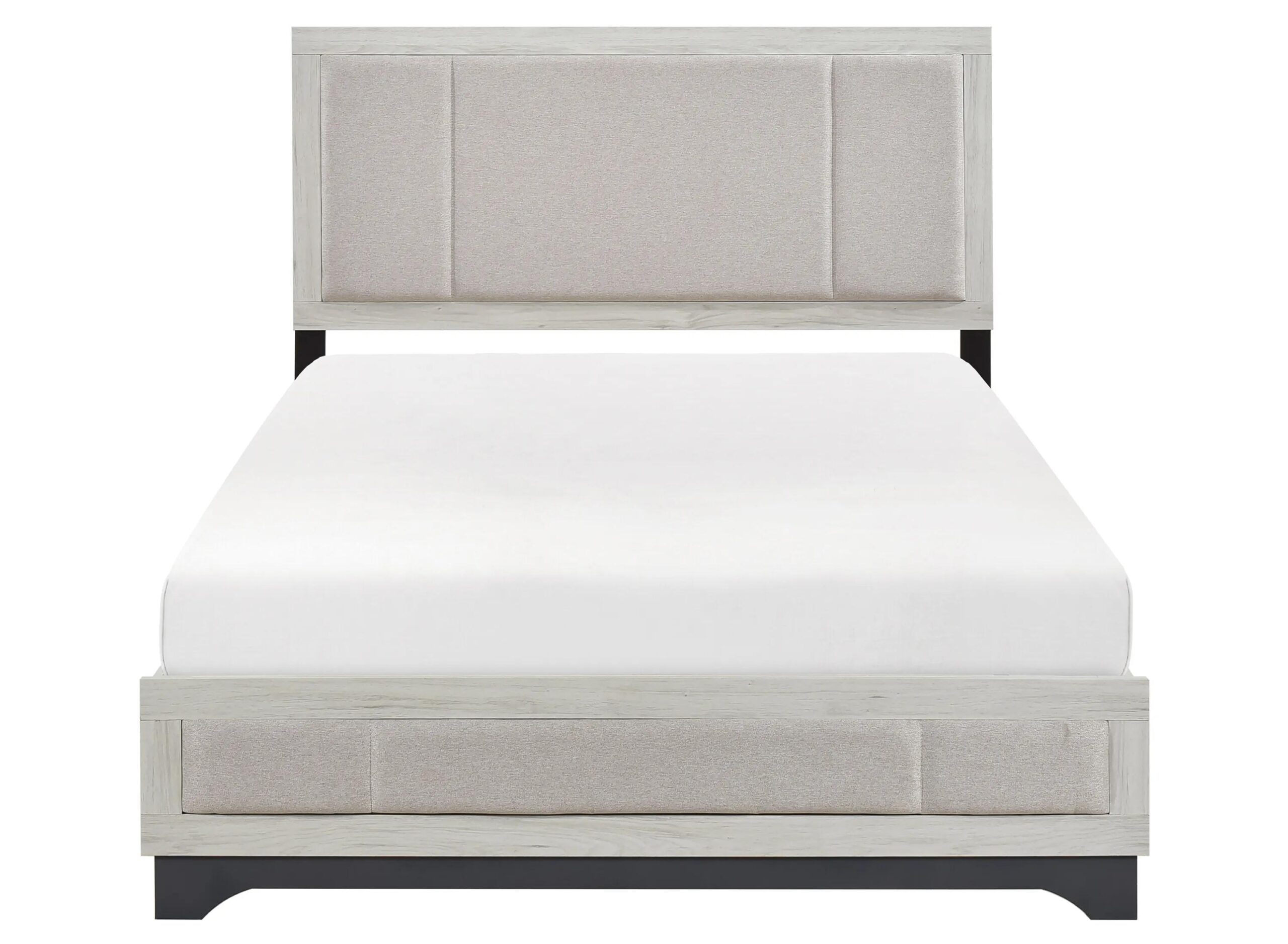 Elevate your bedroom’s aesthetic with this stylish and contemporary Aspen Platform Bed, featuring a striking two-tone white oak and gray finish. Crafted from a durable blend of lamination paper, wood, and engineered wood, this bed offers a modern look with exceptional stability.