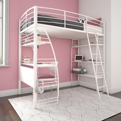Atwater Living Lynn Twin Loft Bed with Desk and Shelves