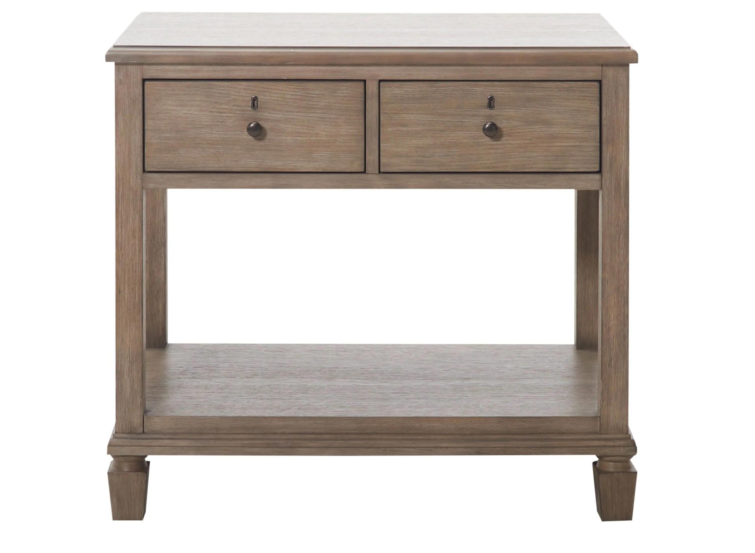 Crafted from hardwood with a dark oak finish, the Auberge nightstand blends stellar craftsmanship with a time-tested look. The subtle variation in tone on the antiqued finish adds a hint of texture to your room.