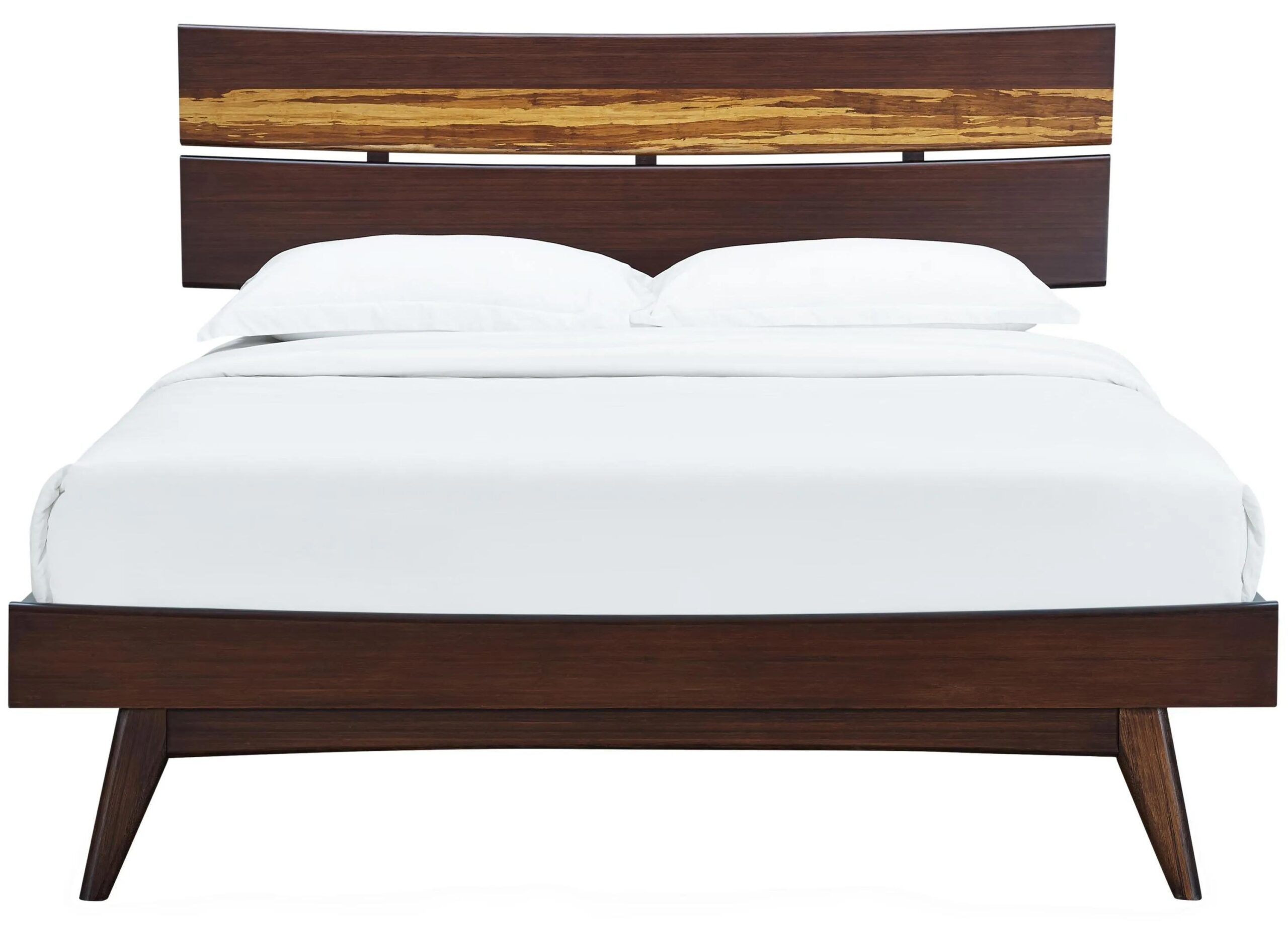 Showcasing the beautiful color and grain of solid bamboo, the Azara bed features contemporary styling, clean lines and a stunning headboard accent in exotic Tiger bamboo. The Azara platform bed is designed for use with a mattress only, which is supported with a solid bamboo European slat system,