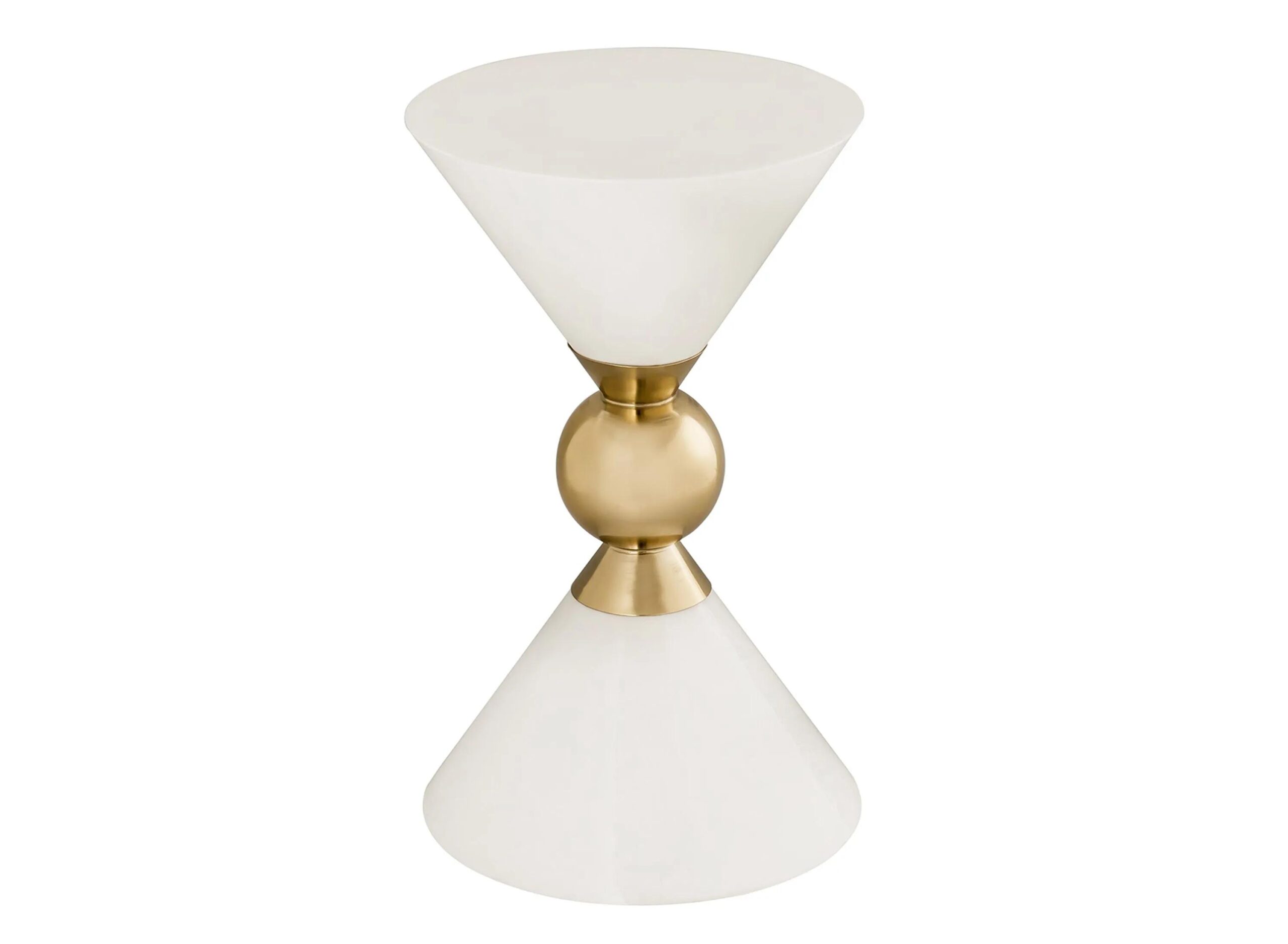 Boasting an hourglass design and a gold finish that contrasts beautifully with its two available color options, the Balhi Side Table will allow you easily to add a fashionable statement to your space.