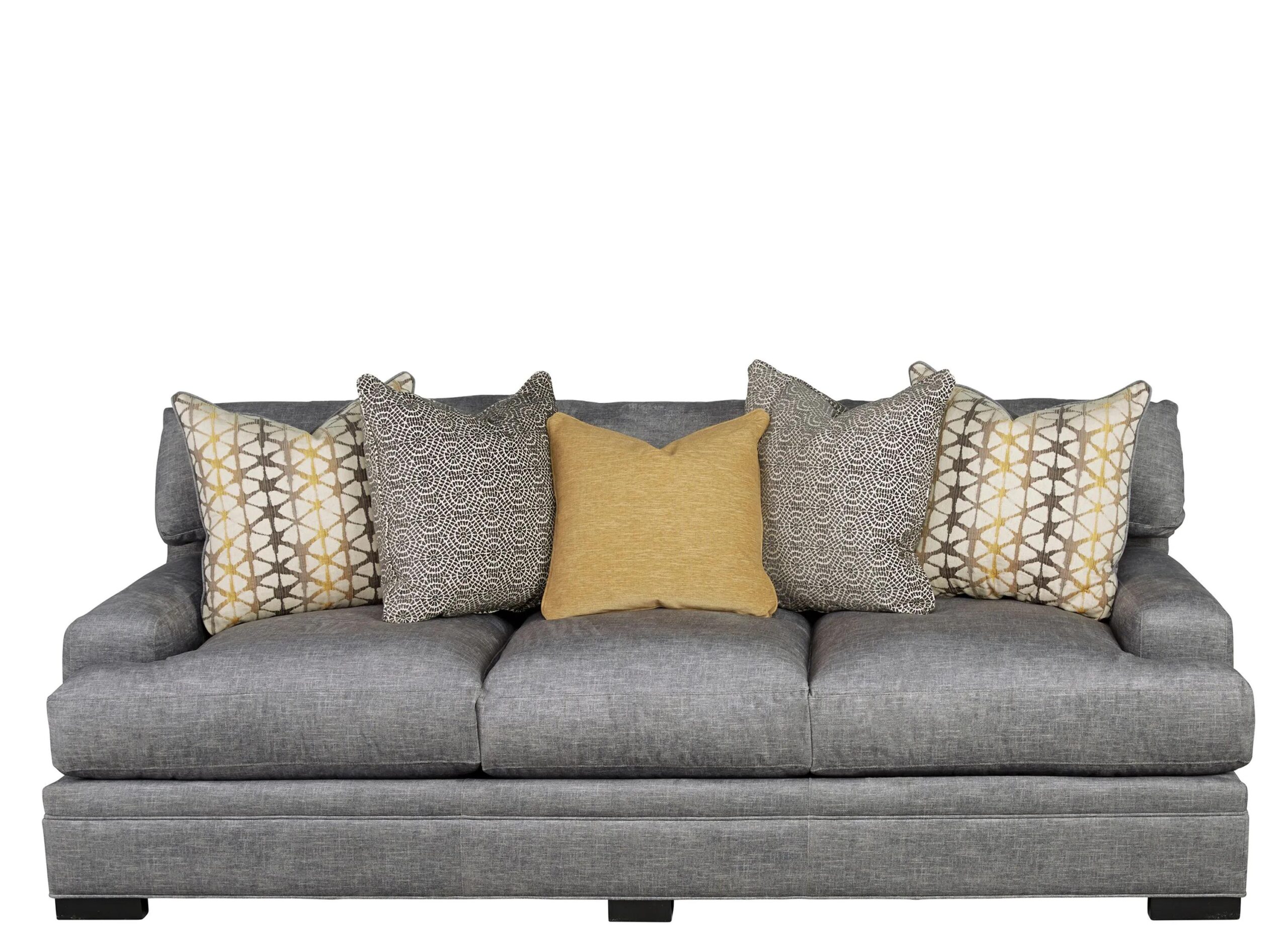 If you’re looking for a sofa that’s full of style and comfort, you’re sure to fall in love with the Bayside sofa. Soft polyester in trendy gray adorns this sofa while fun woven pattern on the pillows gives your living room a bit of flair.