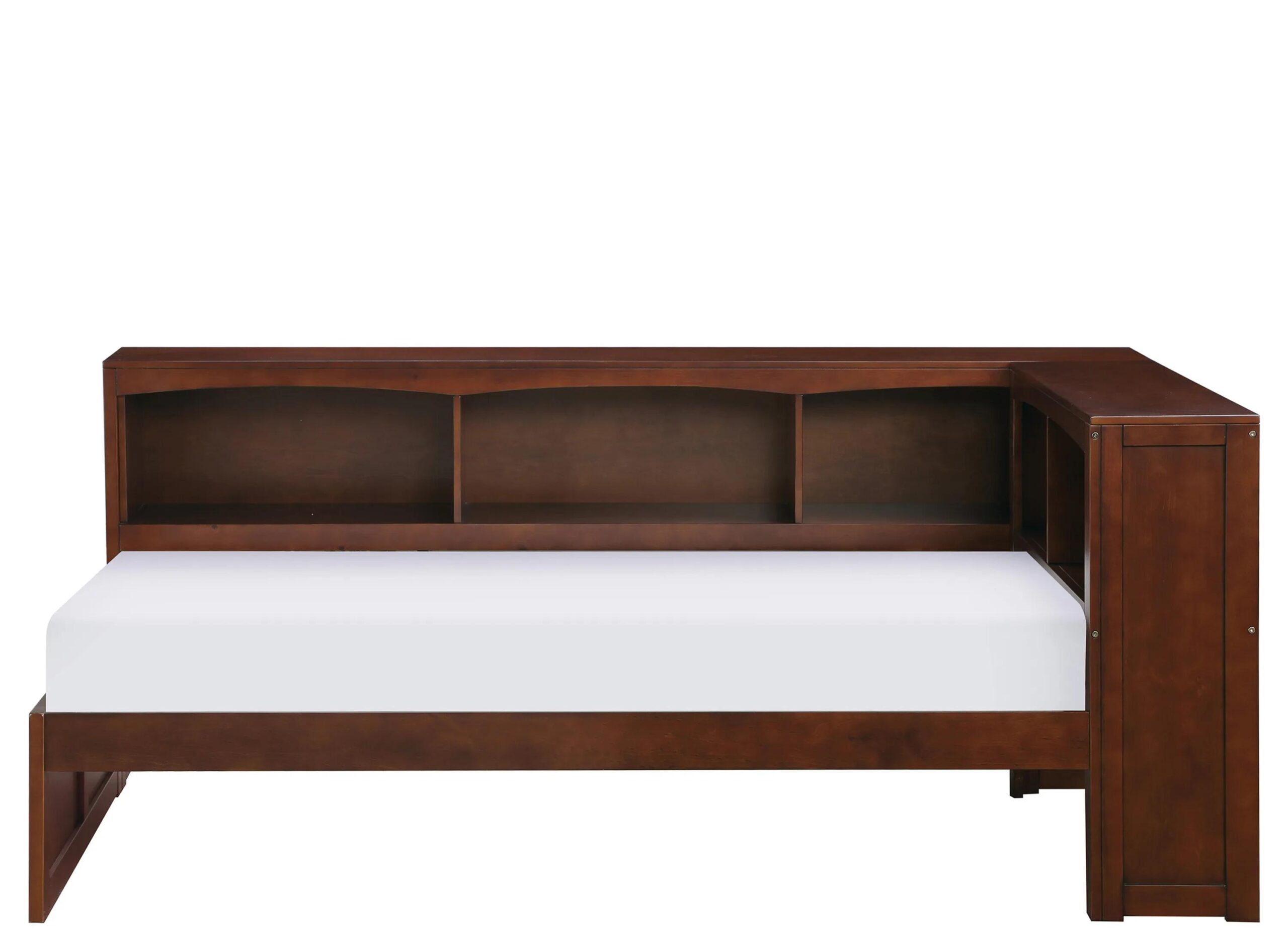 Maximizing sleep space is achieved with the stylish Belisar Bookcase Corner Bed. This transitional twin corner bookcase bed is featured in a dark cherry finish making it an appropriate choice for a number of youth bedroom settings.