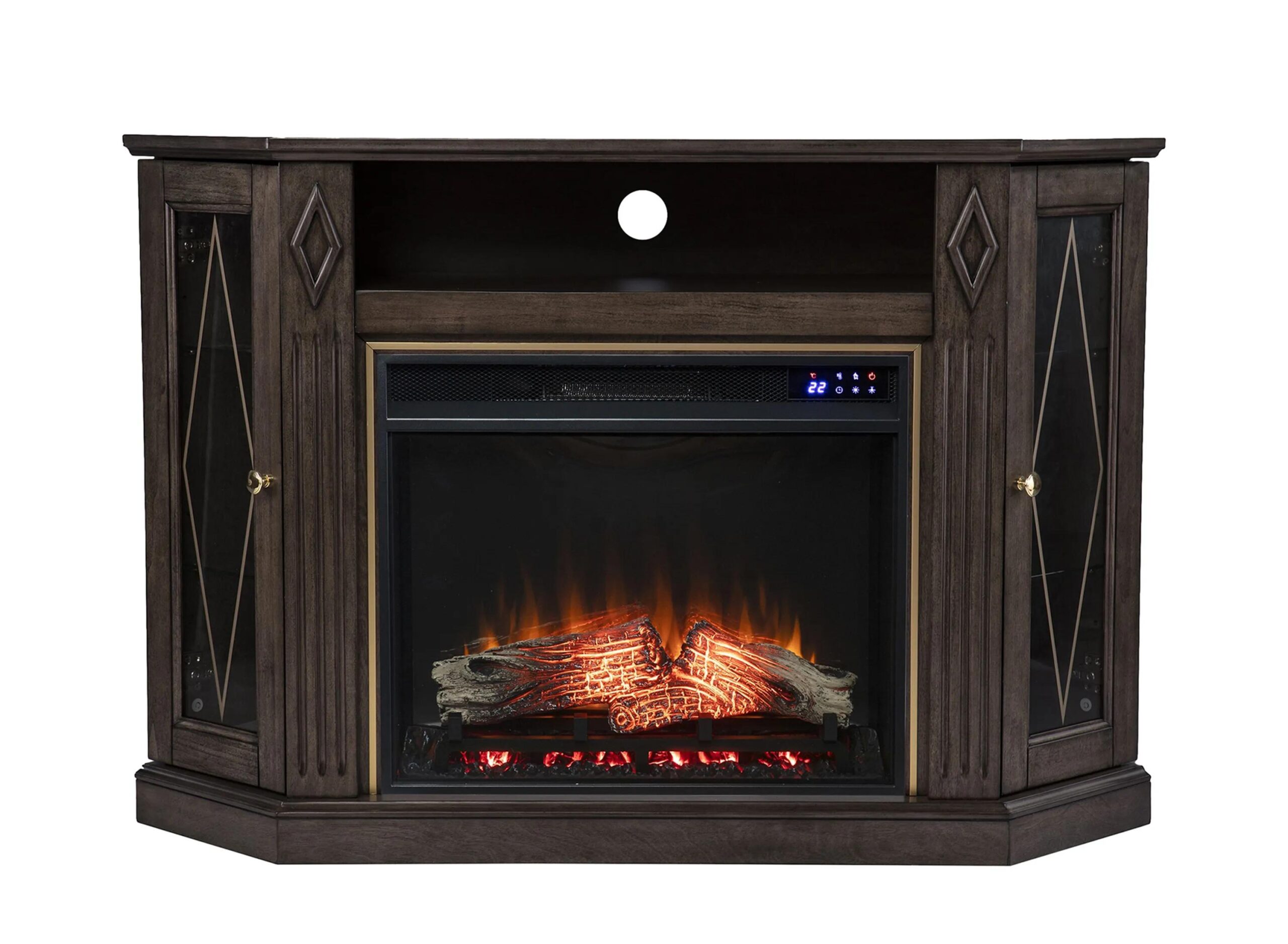 Keep everyday necessities front and center with this Blackburn corner media fireplace. Adjustable glass shelves organize knickknacks or remotes, while an open media shelf holds consoles and receivers with ease.