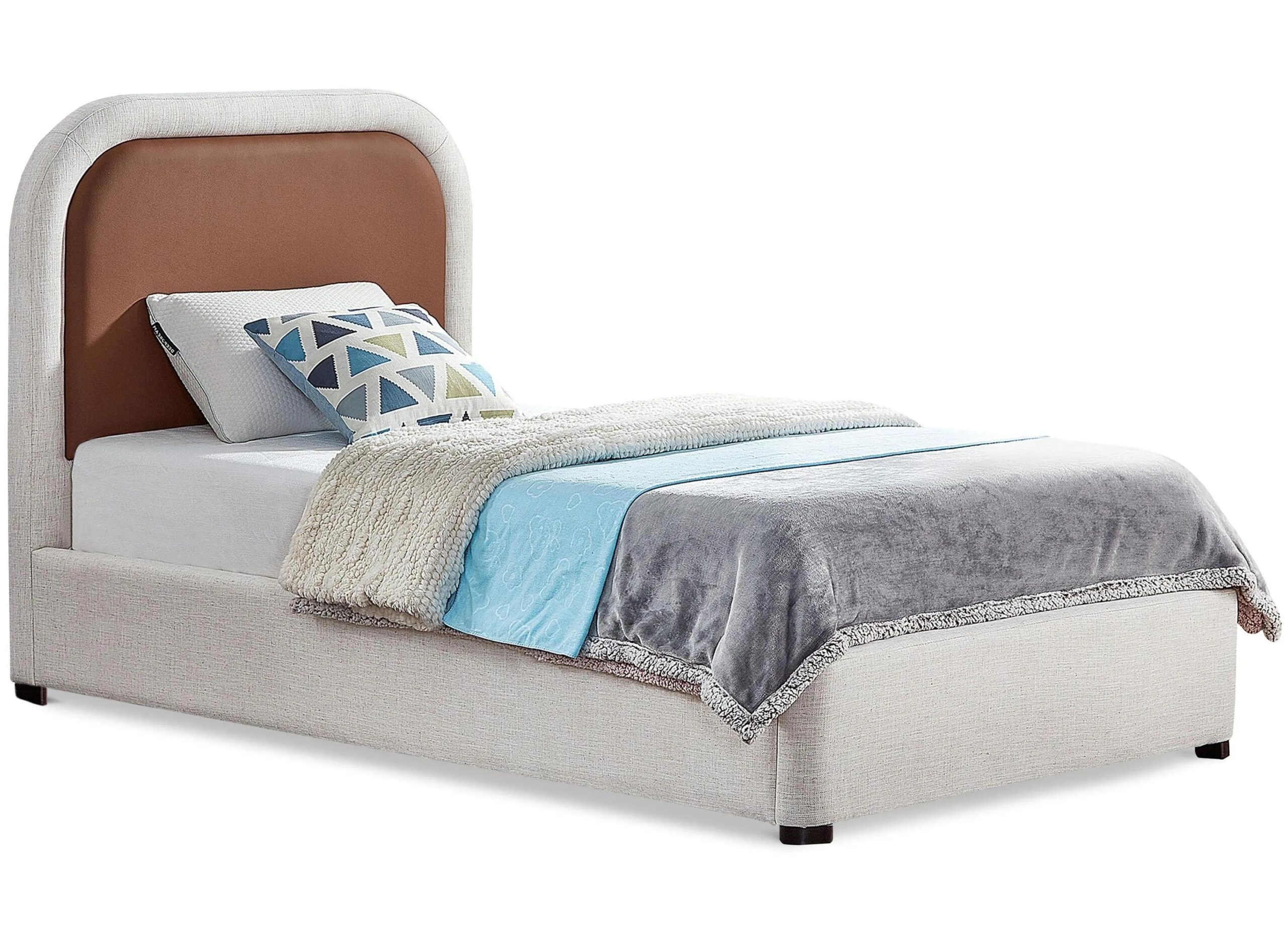 Create a dreamy look in your modern bedroom with this Blake Bed. This bed offers a heavily padded soft brown faux leather headboard that’s inviting to the upper body as you recline in bed to read a book or watch TV.