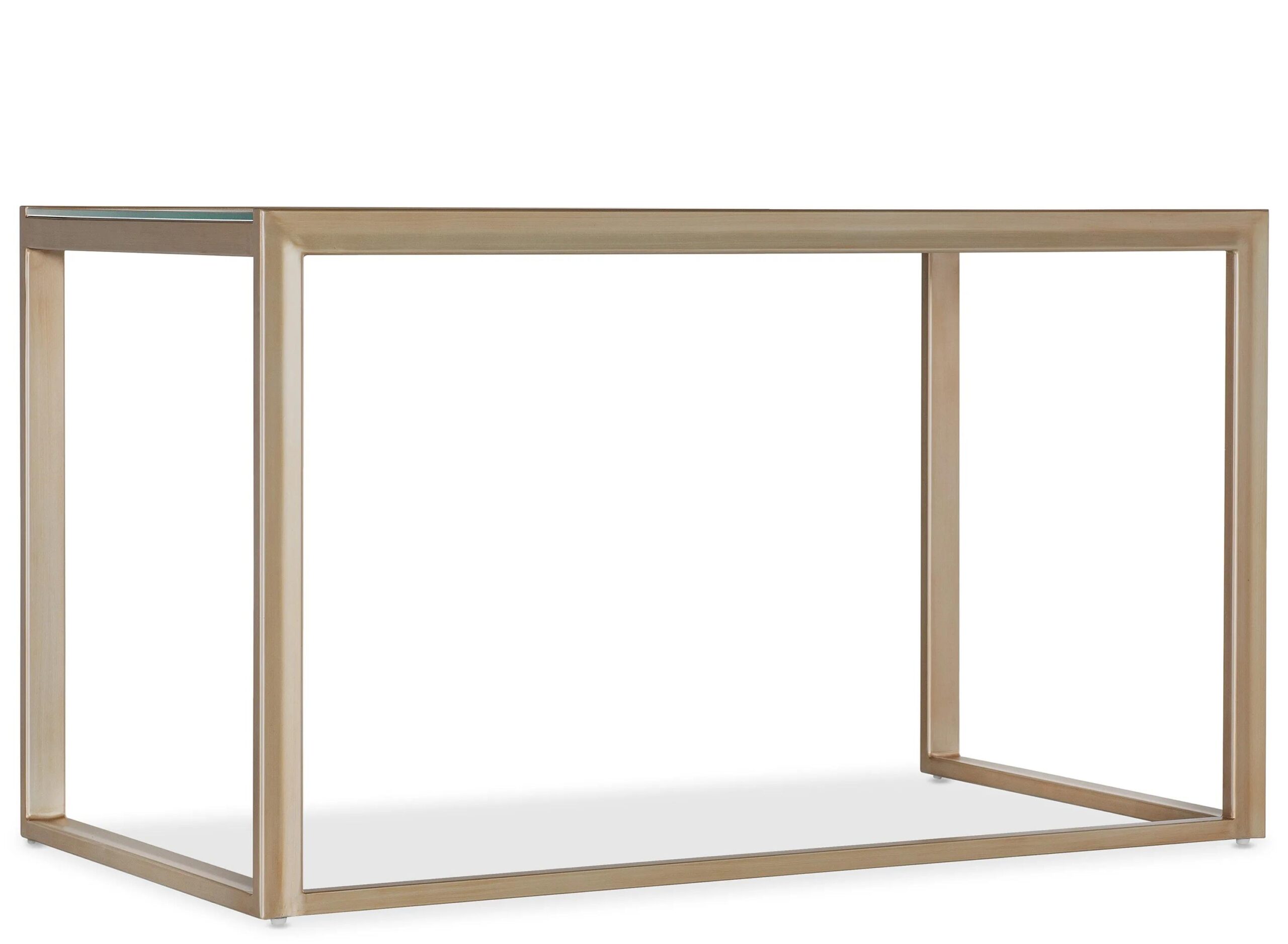 Feminine and delicate yet bold and striking, the Blossoming Hope Writing Desk has a clean silhouette with gold painted metal legs and frame and a tempered Ultra White glass top with hand painting. The reverse-painted glass has a sweeping floral design in pink and green hues over the white backgro
