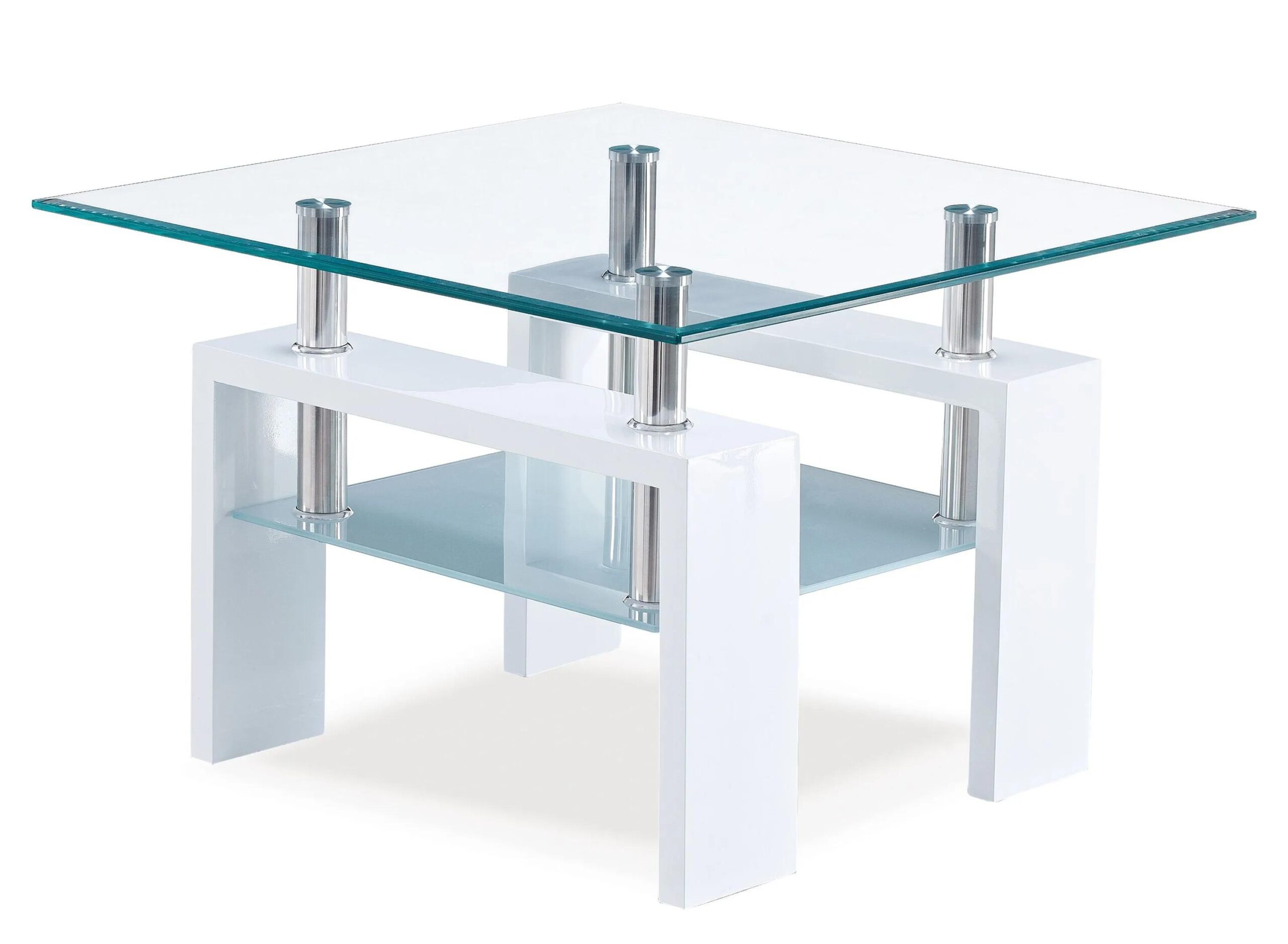 This uniquely-designed Bonilla end table features modern and functional styling. Its sleek glass top and glossy white legs create a focal point in any space. Plus, a frosted glass bottom shelf adds storage to finish the look.