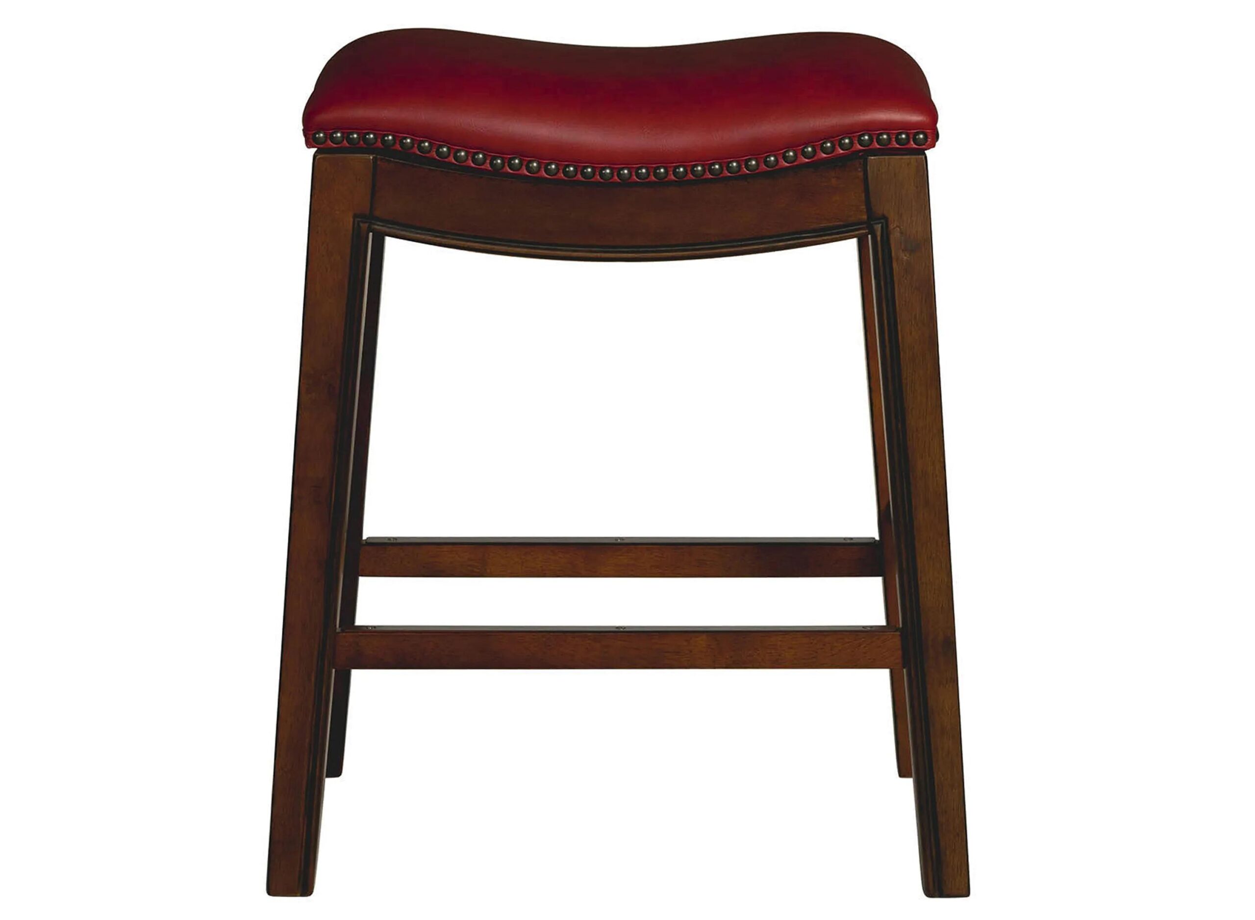 Bowen 24″ Counter-Height Stool will look great in your home! This single counter height stool features a faux leather seat accented with nail head trim. The deep chestnut finish is a rustic style lover’s dream.