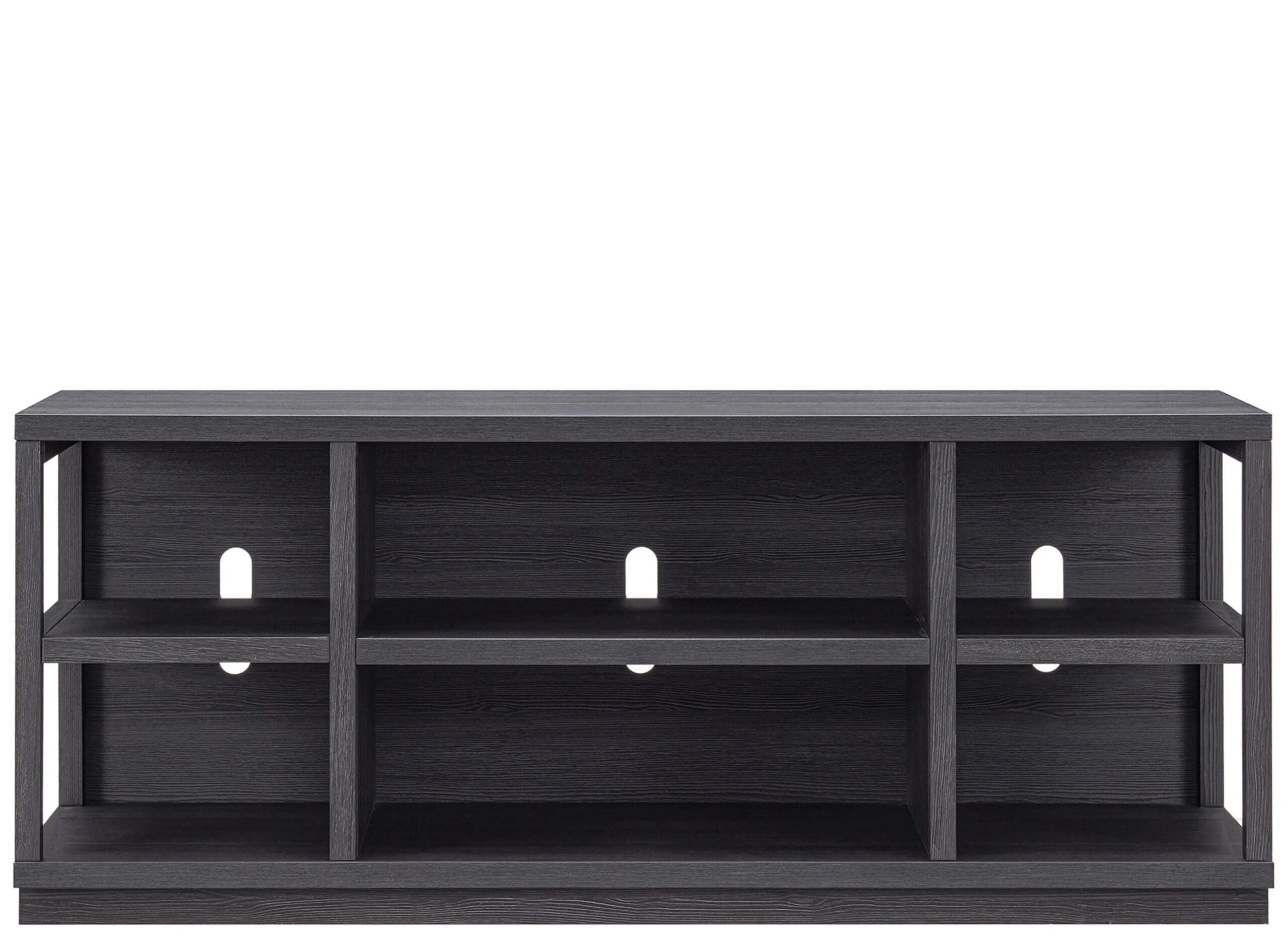 Striking in its simplicity, this Scandinavian-inspired Bowen TV stand emphasizes clean lines and straightforward design, from the planked-style wood to its streamlined silhouette. This two-shelf entertainment solution features six separate storage compartments, while the open-framed sides create