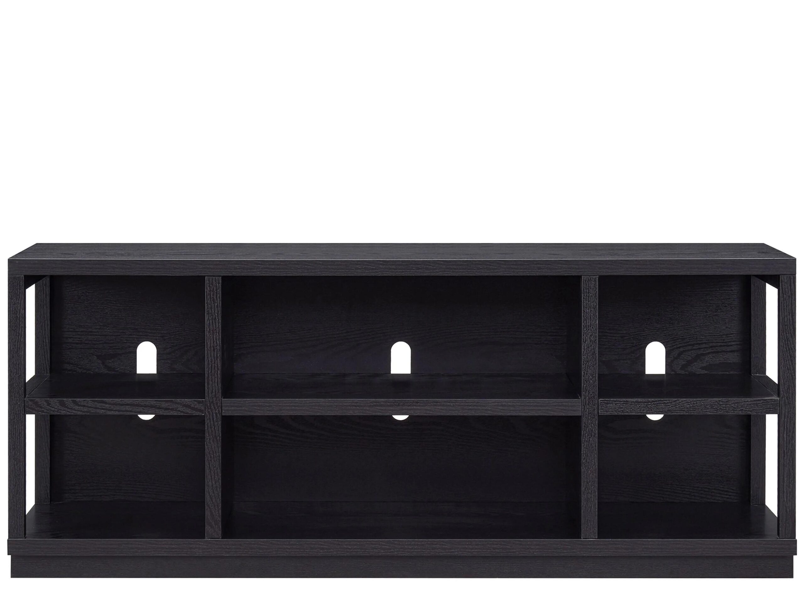 Striking in its simplicity, this Scandinavian-inspired Bowen TV stand emphasizes clean lines and straightforward design, from the planked-style wood to its streamlined silhouette. This two-shelf entertainment solution features six separate storage compartments, while the open-framed sides create