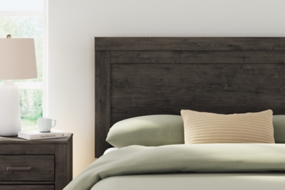 Priced to entice and styled to impress, this queen panel headboard pairs urban sophistication with a decidedly relaxed air. It’s got the crisp, clean lines of a contemporary piece, complemented with the earthy feel of a dark charcoal finish.
