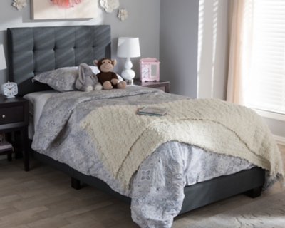 Find the perfect balance of a warm, cozy feel and a cool, contemporary look with this simply striking upholstered bed. Clean lines are softened with subtle grid tufting that lends a tailored touch and upscale sophistication.