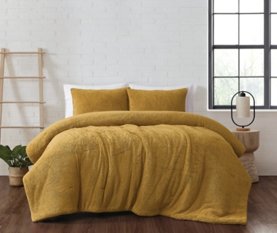 Brooklyn Loom Marshmallow Plush 3-Piece Full/Queen Comforter Set, Mustard