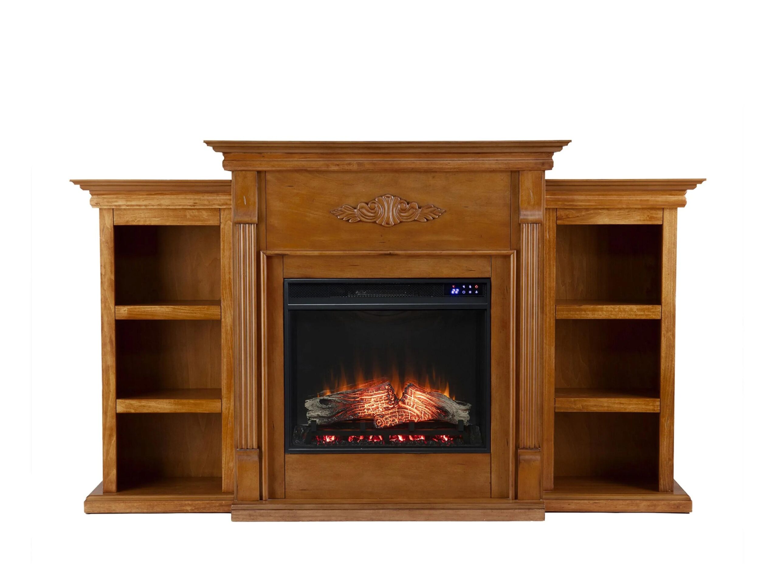 Turn up the heat on style with the Bruton Fireplace. Classic woodwork flourishes across the mantel and pilasters, lining up a traditional fireplace look. Optional bookcases shelve your reading lists, decor, and family photos, while the mantelhouses floral arrangements and your memento collection.