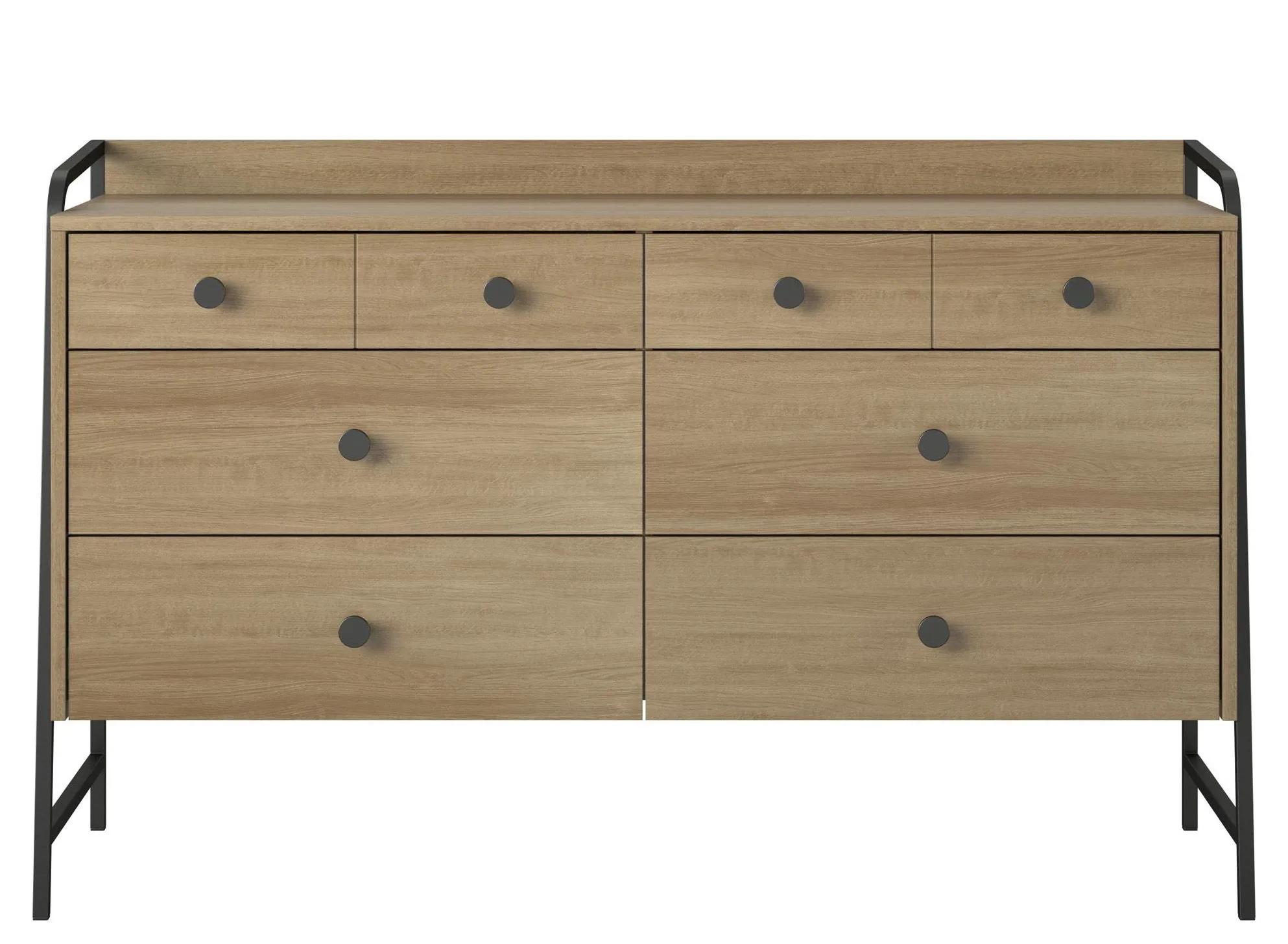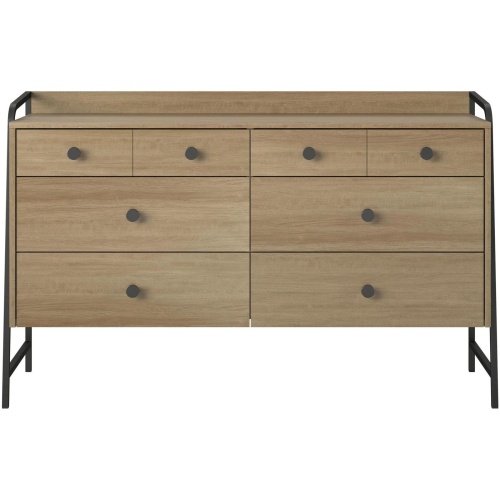 Give your bedroom a fresh makeover with the Bushwick Wide 6 Drawer Dresser by Novogratz. This rustic Wide 6 Drawer Dresser is comprised of engineered wood with a natural wood grain finish atop an industrial style power coated metal frame.