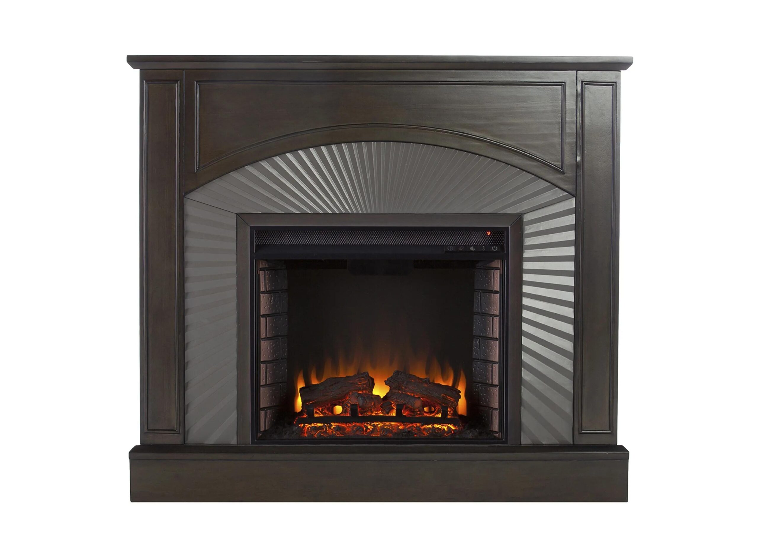 Infuse warmth and comfort into your home with this freestanding Buxton Fireplace. Crown molding and classic woodwork craft a traditional look, while the grooved silver surround adds texture and contrast to your space.