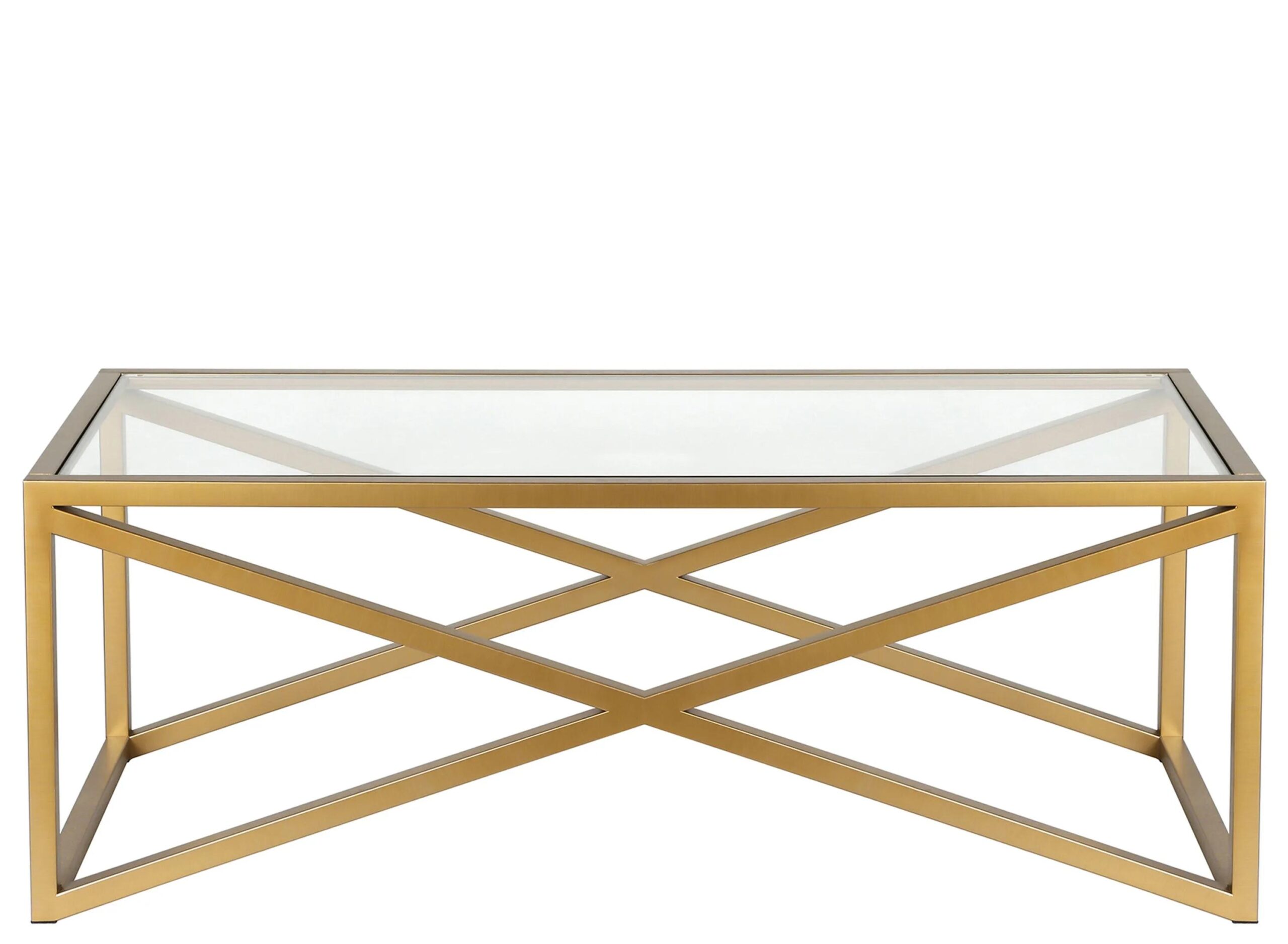 This urban inspired Calix coffee table is the perfect pick for your living room or den ensemble. Its base features x-shaped legs creating geometric interest. The top is a transparent tempered glass which shows off the architectural connection and carries the structured design through the frame.