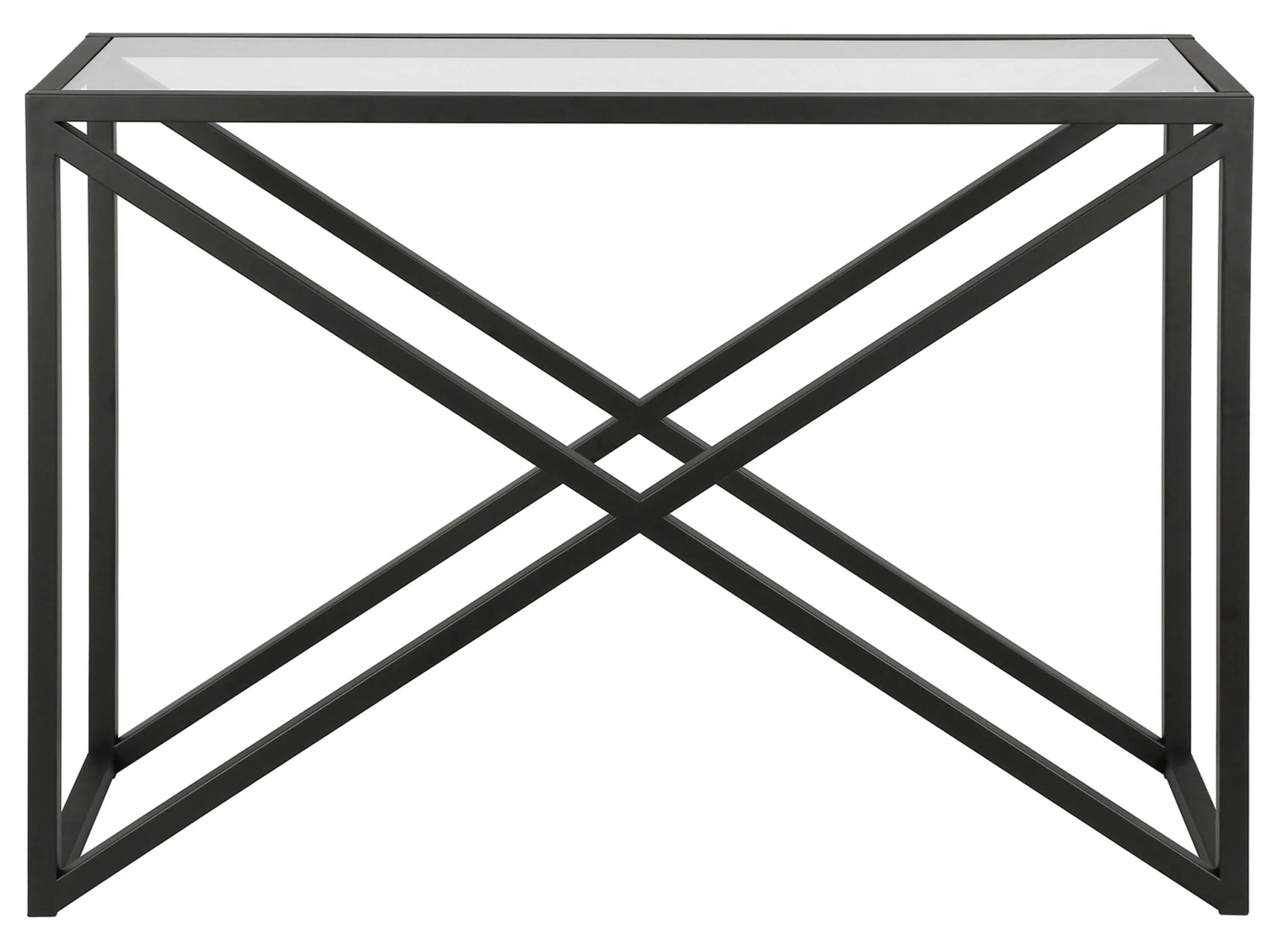 This urban inspired accent table is the perfect pick for your living room or den ensemble. Its base features x-shaped legs creating geometric interest. The top is a transparent tempered glass which shows off the architectural connection and carries the structured design through the frame.