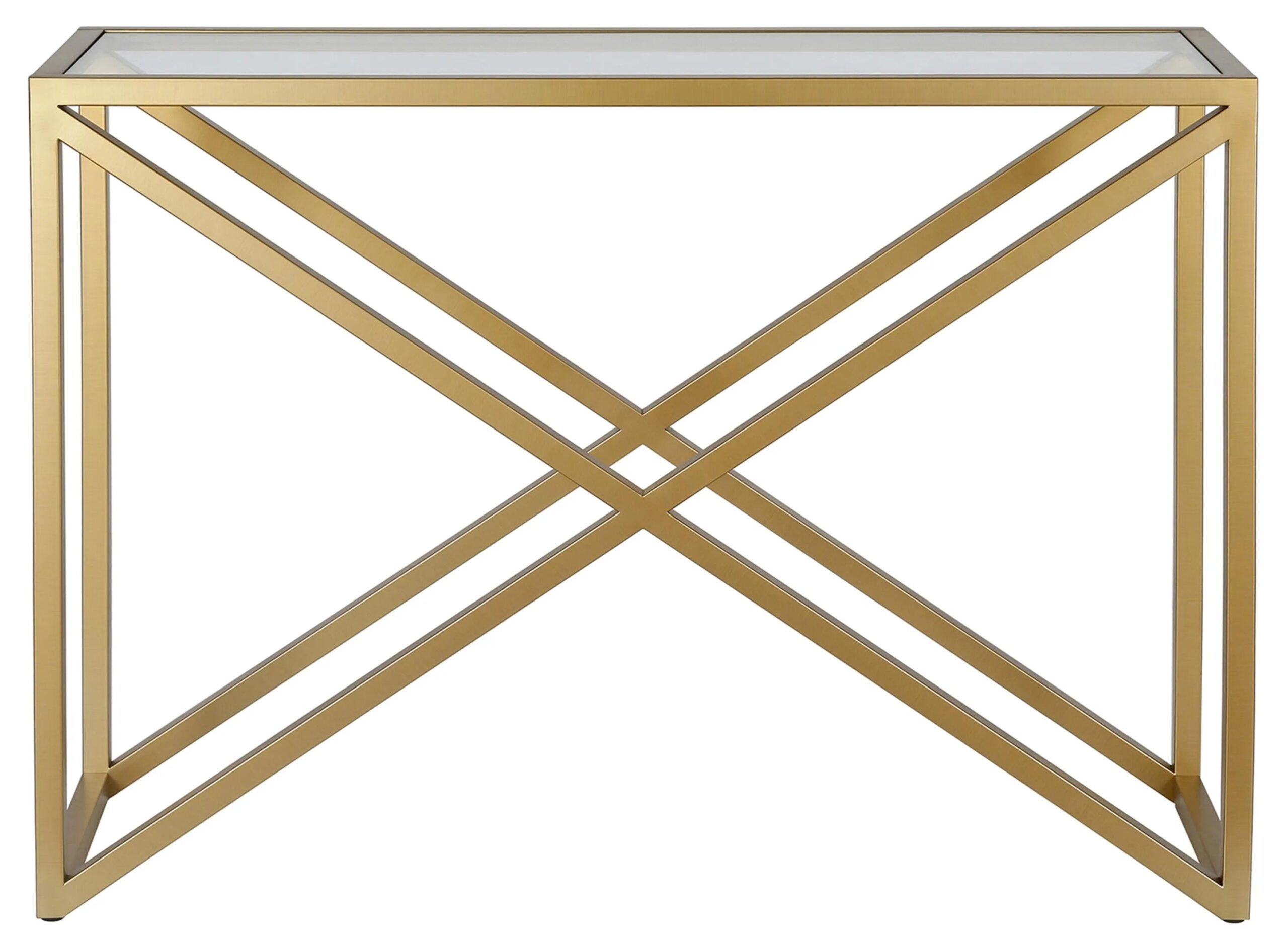 This urban inspired accent table is the perfect pick for your living room or den ensemble. Its base features x-shaped legs creating geometric interest. The top is a transparent tempered glass which shows off the architectural connection and carries the structured design through the frame.